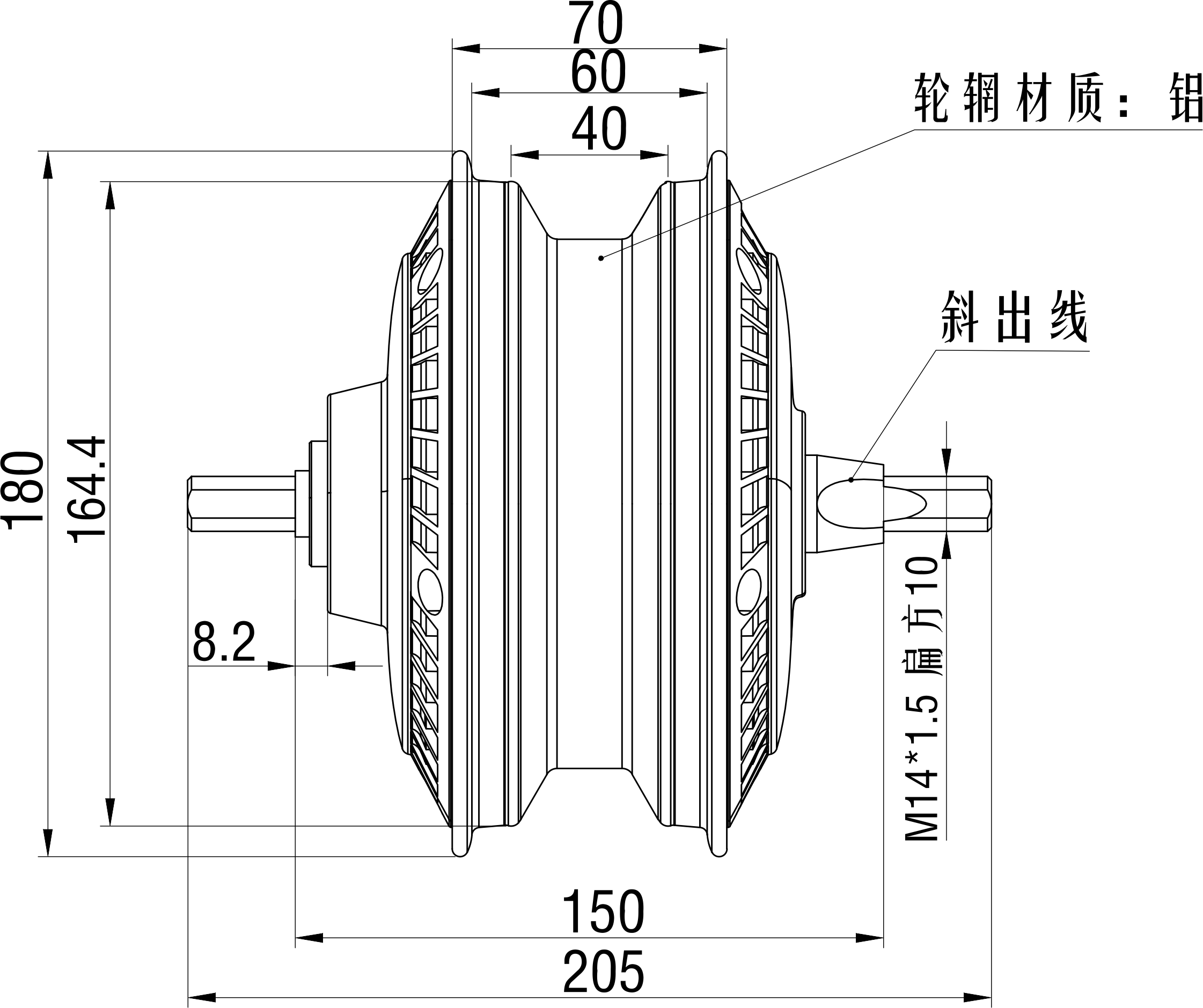 電機軸螺紋尺寸: M14
